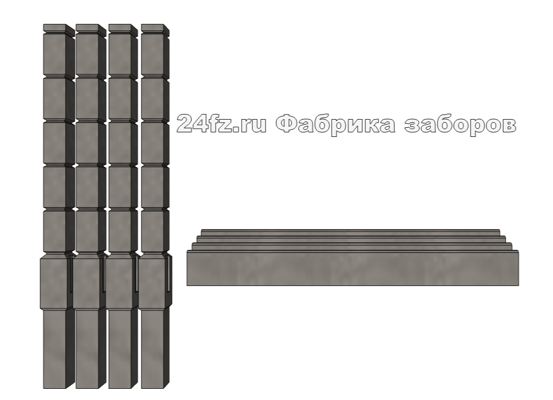столбы и цокольные панели изготавливаются методом полусухого прессования бетона, в каждом изделии заложено по 4 прутка металлической арматуры диаметром 8 мм
